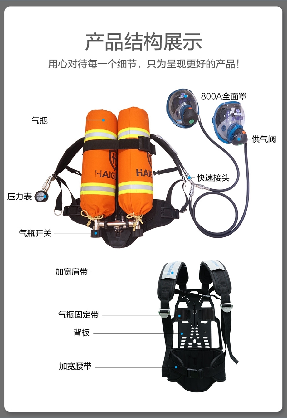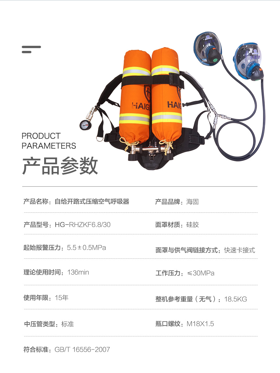 海固RHZKF6.8/30(雙瓶他救款)正壓式空氣呼吸器 6.8L雙瓶他救