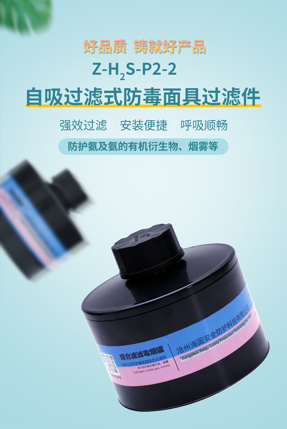 海固Z-H2S-P2-2/P3-2綜合濾毒濾煙罐 硫化氫及煙霧防護(hù)