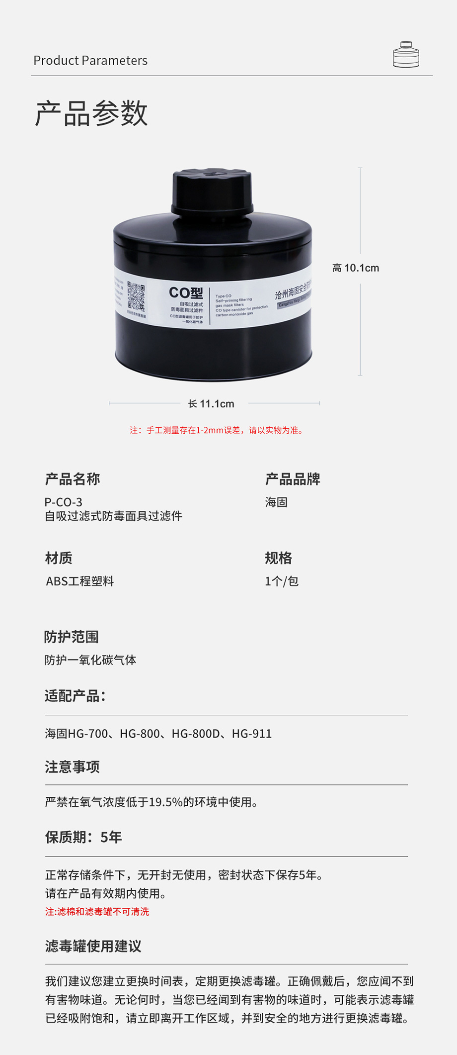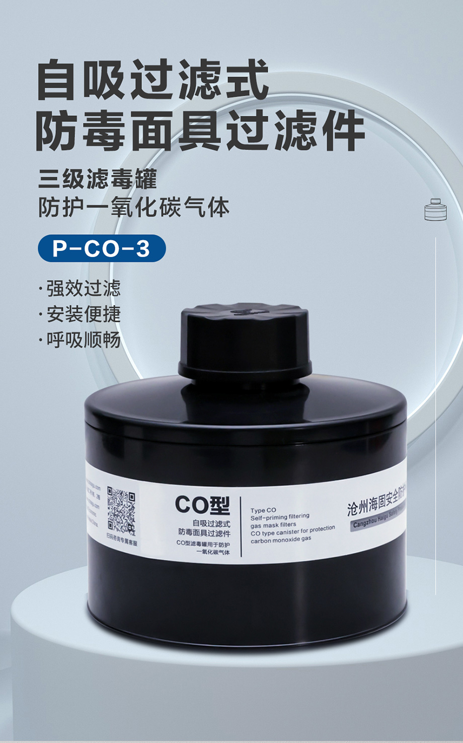 海固P-CO-3濾毒罐 一氧化碳防護(hù)三級(jí)濾毒罐
