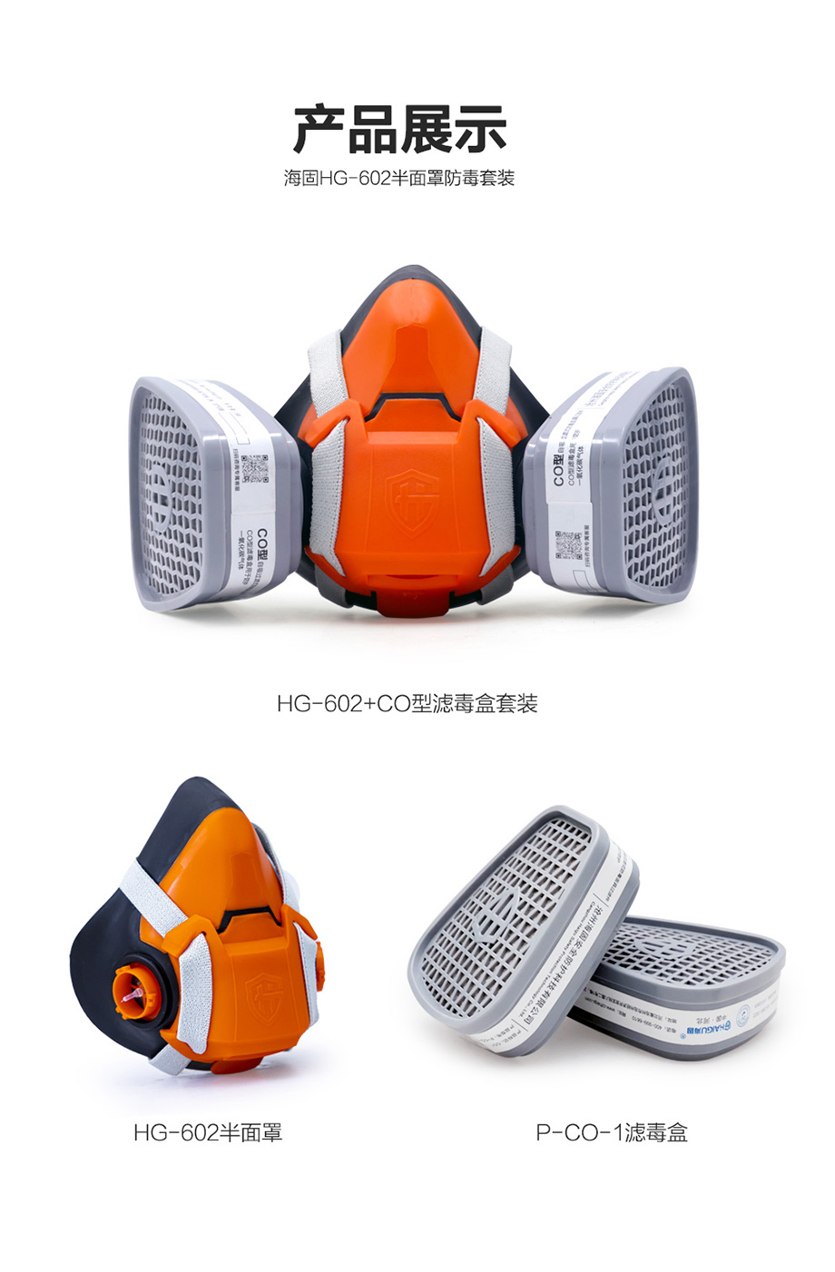 海固602半面罩+P-CO-1濾毒盒 一氧化碳防護套裝